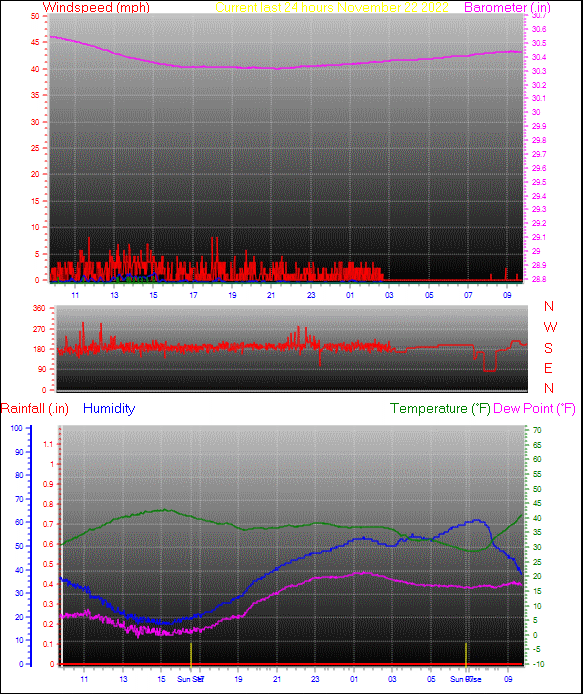 | Maximum Temperature (since midnight) | 41.1°F at: 9:44 AM | Minimum Temperature (since midnight) | 28.6°F at: 6:59 AM |