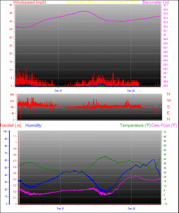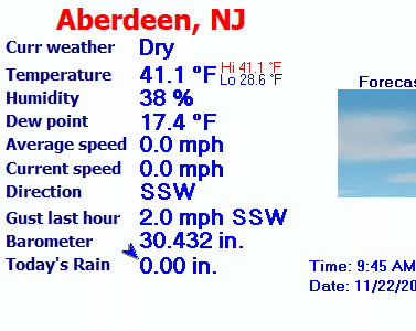 | Windchill Temperature | 41.1°F | Maximum Gust (last hour) | 2.0 mph at: 8:54 AM |