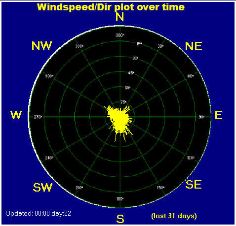 Maximum windspeed = 9.2 mph from 160°(SSE) on day 12 at time 03:35